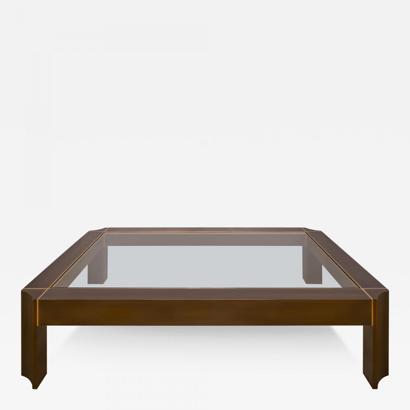 Lobel Modern Archive has a photo of this table in the Karl Springer showroom.Origin: United States Period: 1980-1999 Materials: Satin Bronze, Polished Brass, Glass - Handcrafted Condition: Good. Condition: Excellent - Metals have been cleaned, polished and lacquered. New glass top fabricated by Lobel Modern. Creation Date: 1980s Number of Pieces: 2-3 Styles / Movements: Modern, Studio Craft, Collectible Design Dealer Reference #: coffeetable594 Incollect Reference #: 833054 -