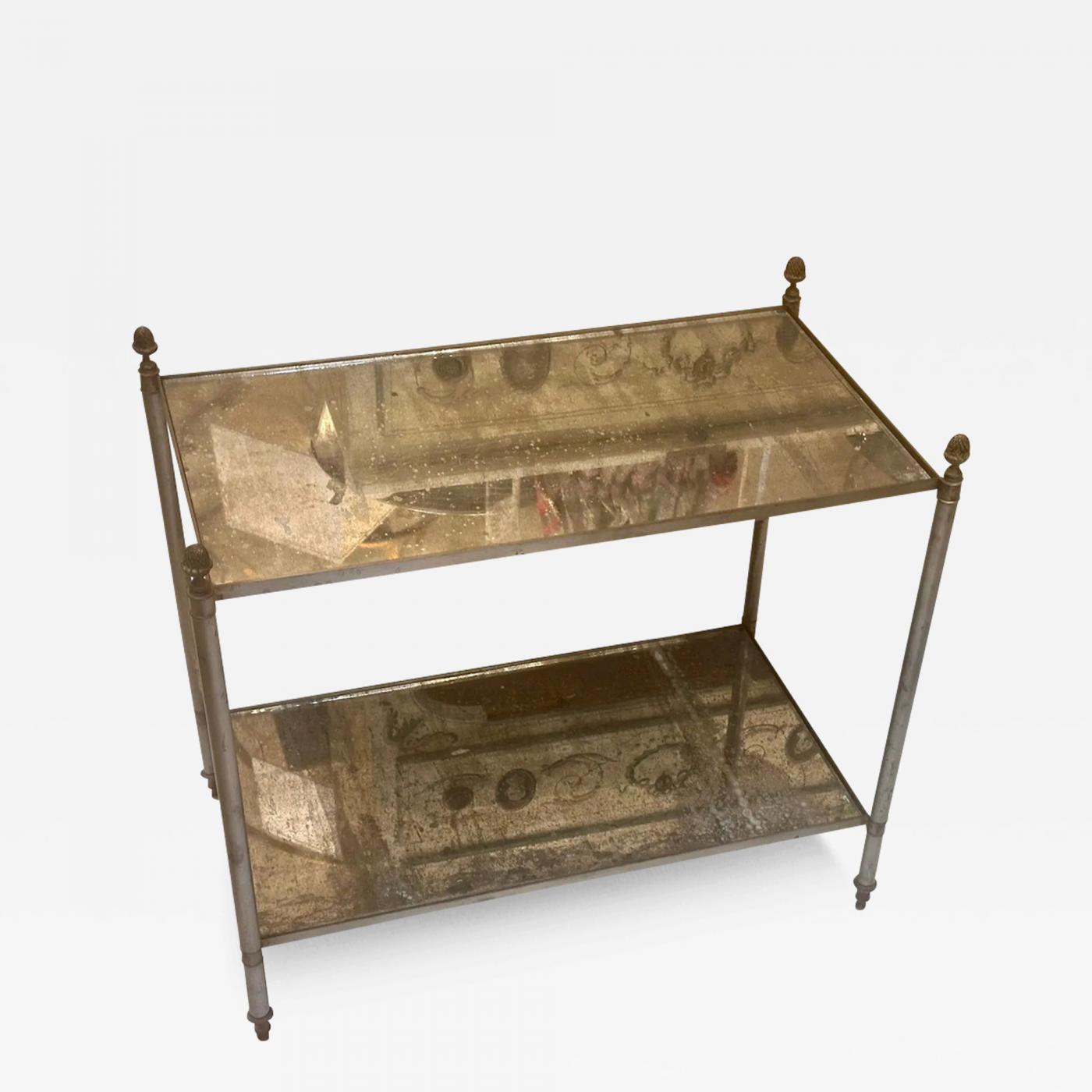 60's Maison Jansen Steel & Bronze Mirrored Side or End Table