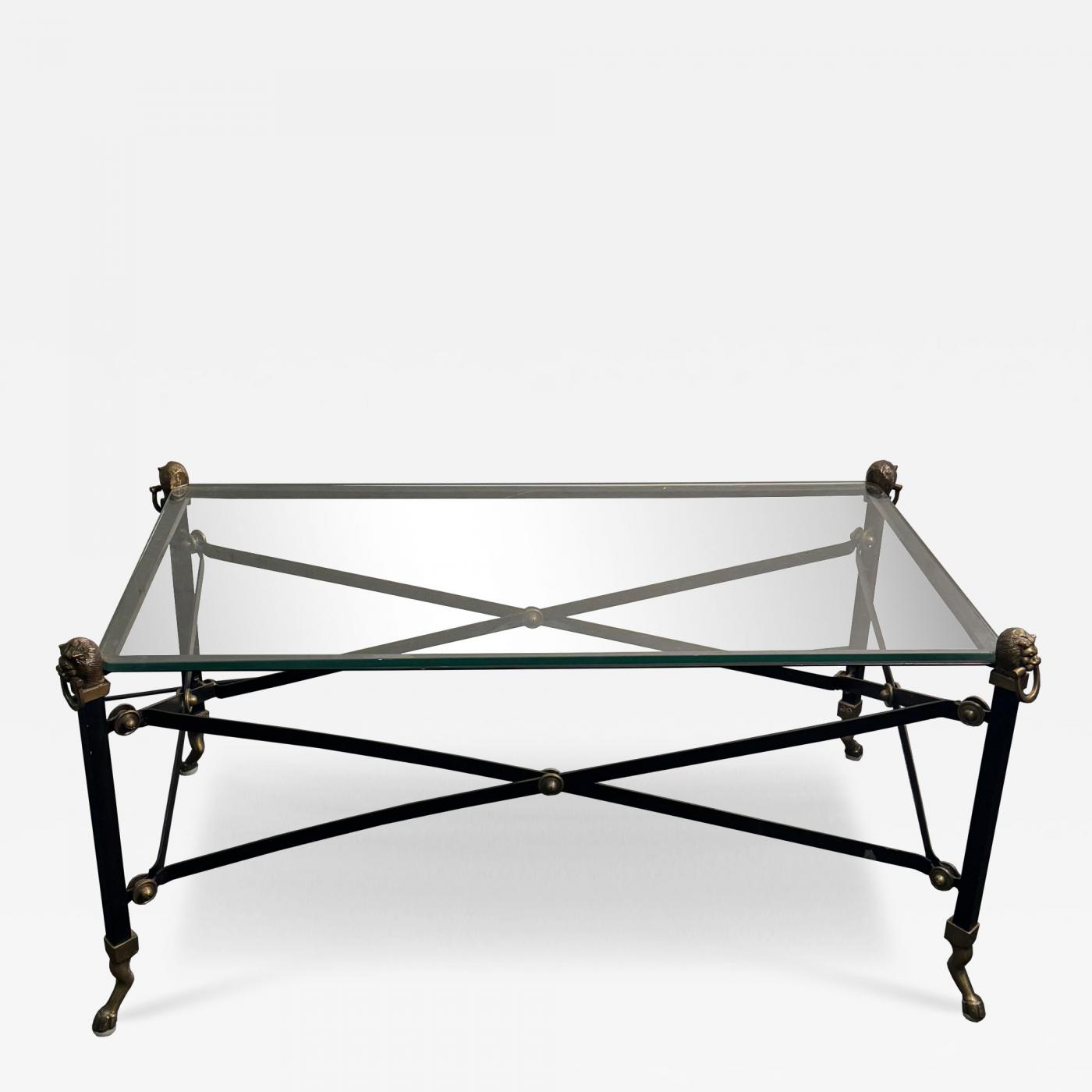 ELEGANT BRONZE/ BLACK ENAMEL WITH LION HEAD RING ACCENTS COFFEE TABLE