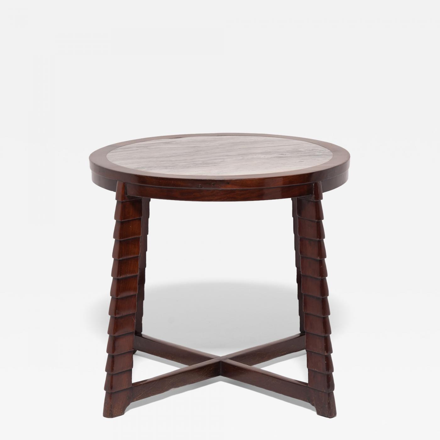 Depth: 35.0" // In the 1930s, Shanghai, China was swept up in the Art Deco design movement, permeating every part of life in the bustling, vibrant city. This stylized table is a product of the time and exemplifies the qualities that make Art Deco so sought after: simple lines, striking colors, and bold geometric shapes. Constructed of hand-carved rosewood, the stepped legs of the table support a circular panel of swirling black-and-white marble, held together by traditional mortise-and-tenon joinery.