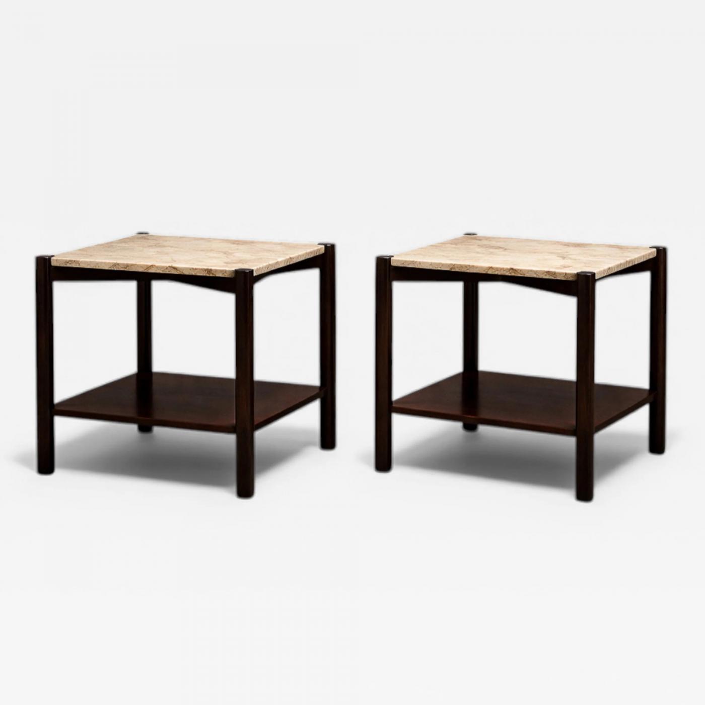 M.L. Magalhães Pair of Rosewood & Marble Side Tables, Brazil
