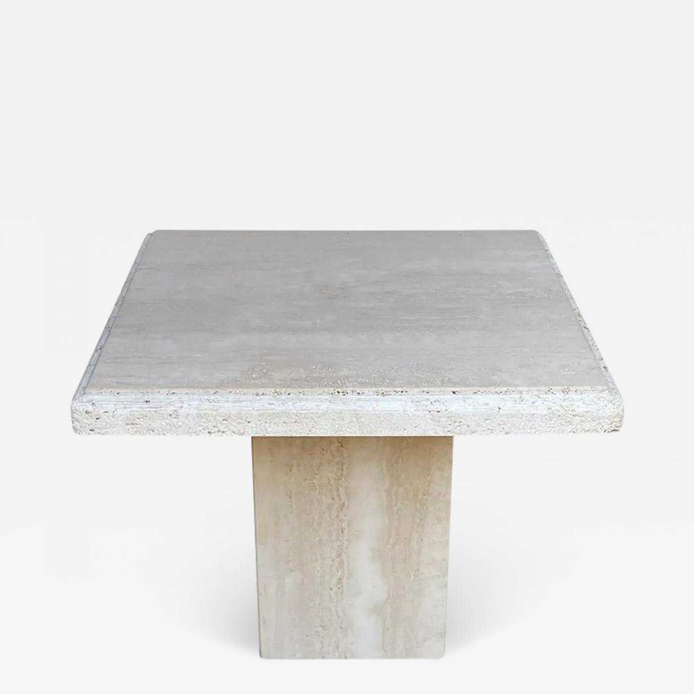 Mid Century Italian Post Modern Travertine Marble Side or End Table in Off White