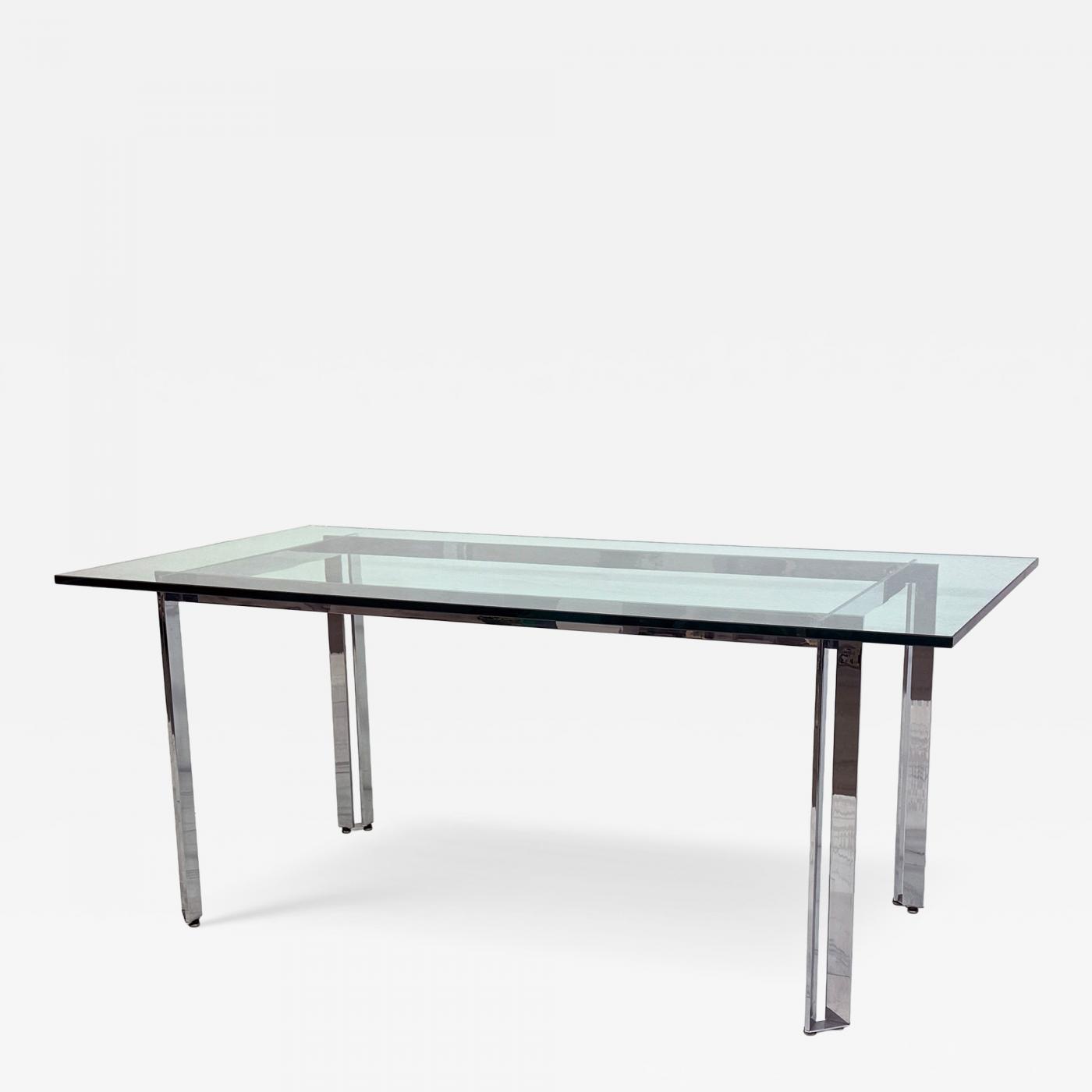 Mid Century Modern Polished Stainless Steel and Glass Dining Table