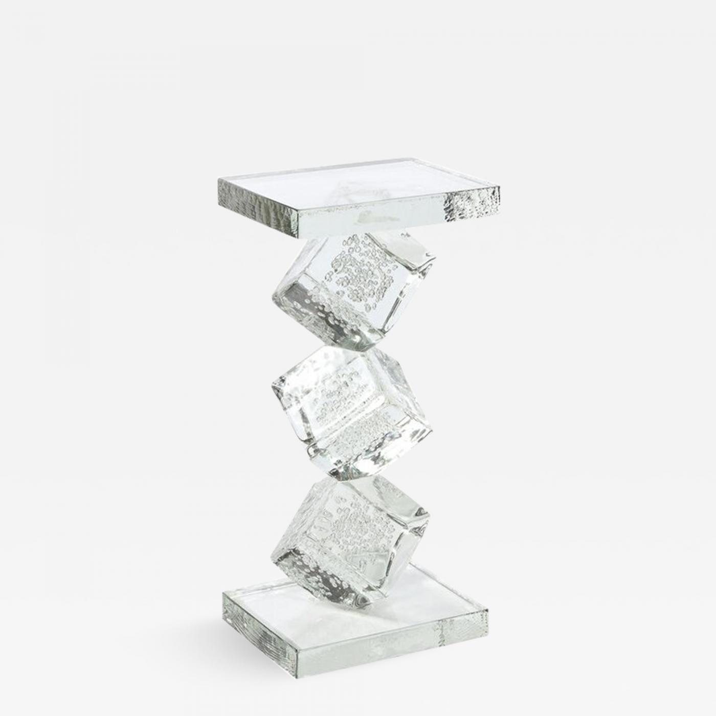 Modernist Sculptural Cubic Handblown Translucent Murano End/ Side Table
