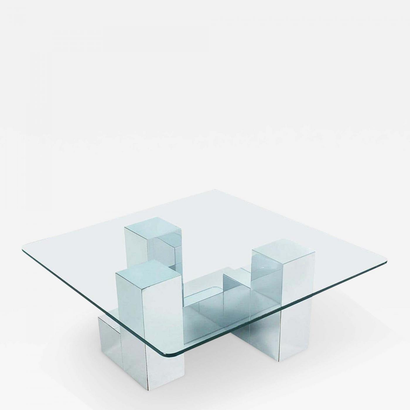 Mid-Century Modern Paul Evans Style Chrome and Glass Square Cocktail Table