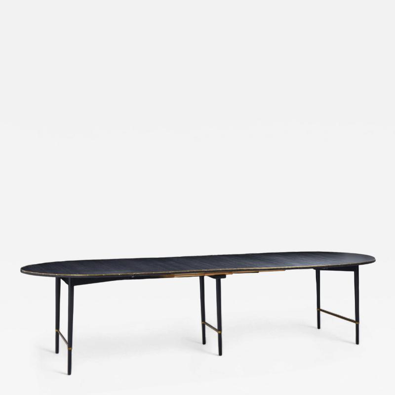 Paul McCobb for Calvin Mid Century Walnut and Brass Dining Table with 6 Leaves