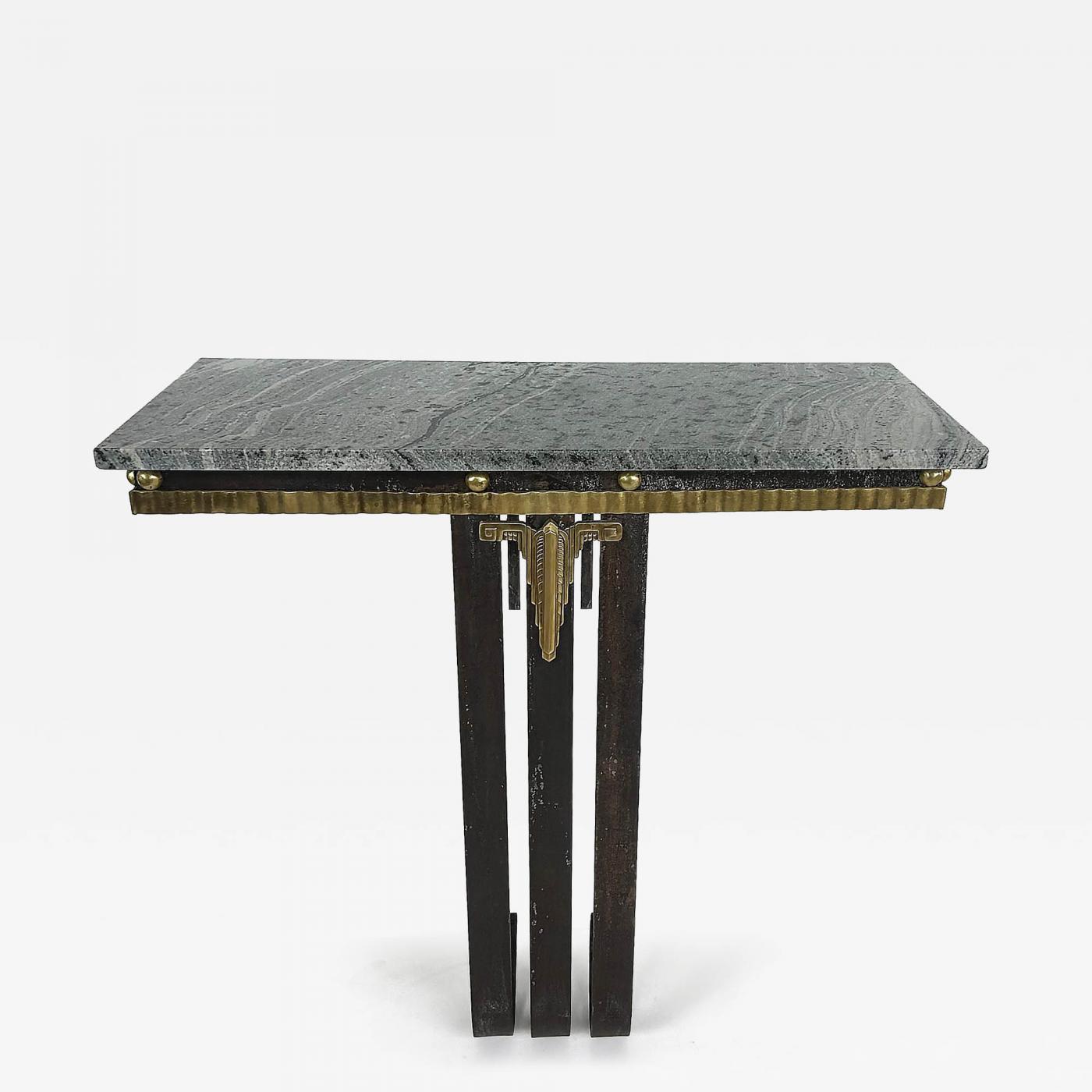 Art Deco Wrought Iron, Brass, Marble Console Table, Subes Manner