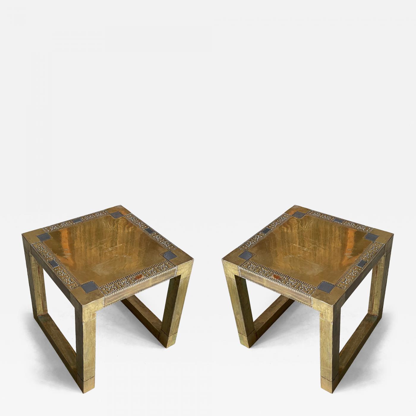 A Pair of Spanish Etched Brass & Pewter Side Tables circa 1970