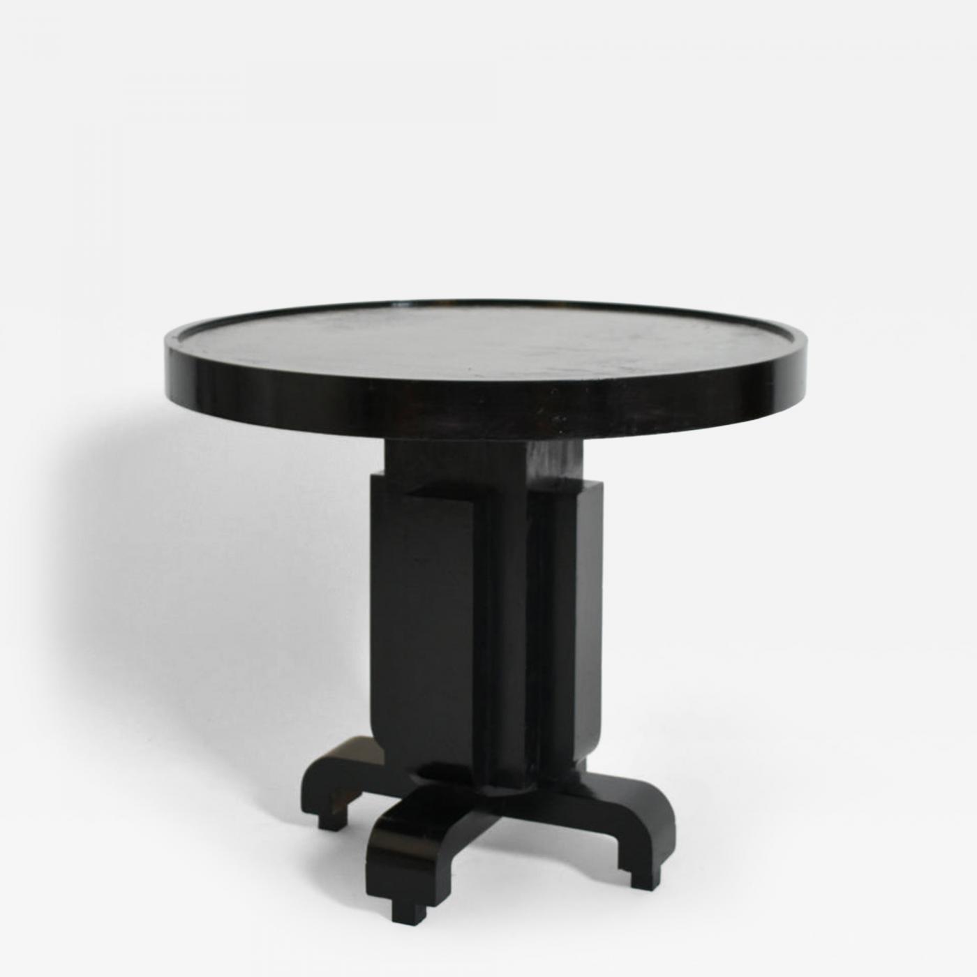 Round ebonised art deco geometric side table 1930s.