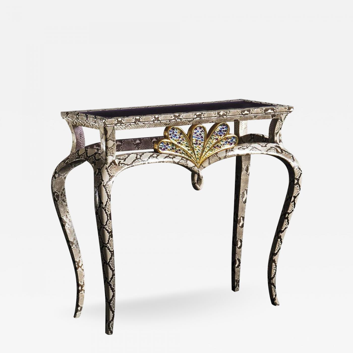 Console covered with Python skin with semiprecious stones.