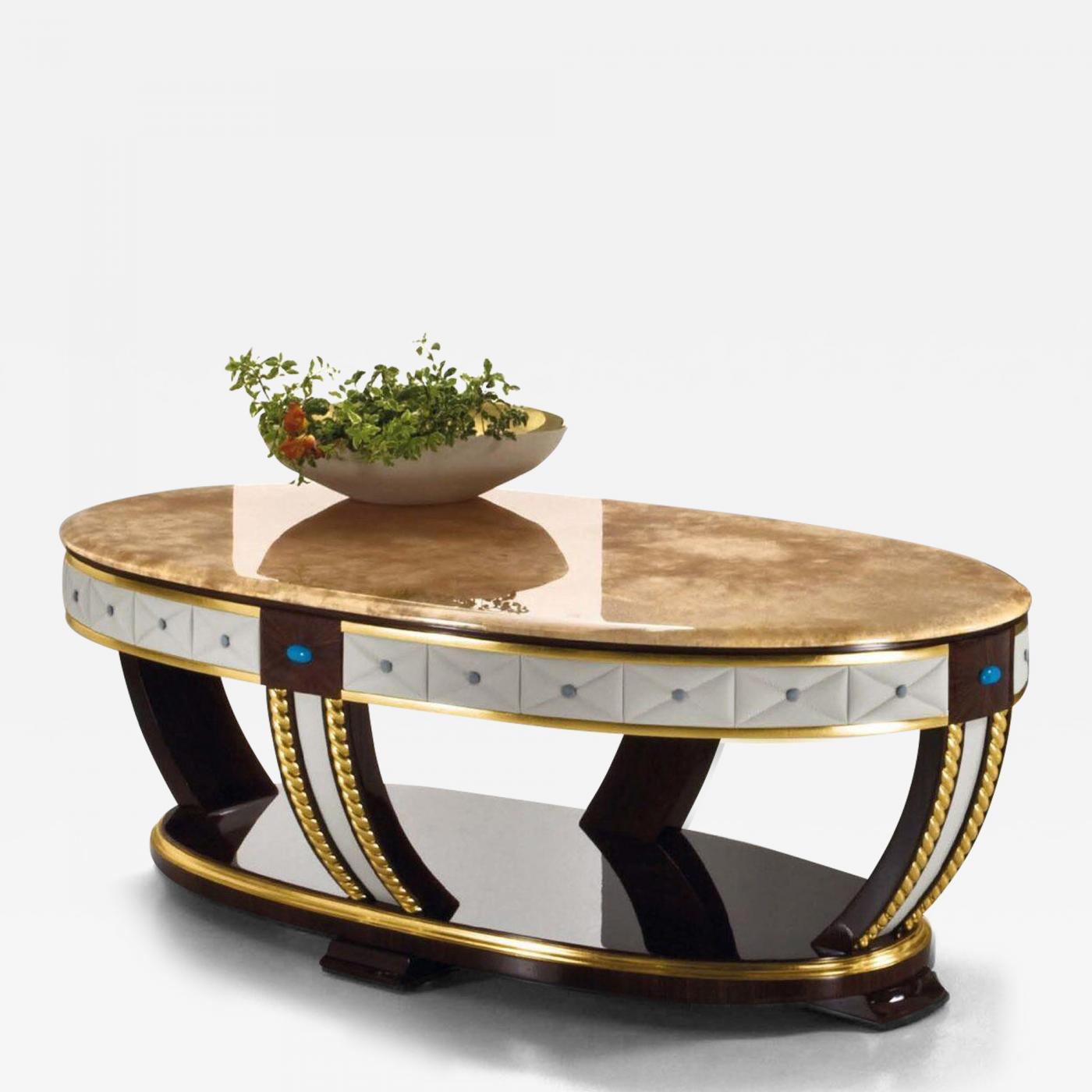 Coffee table in rosewood with leather details,