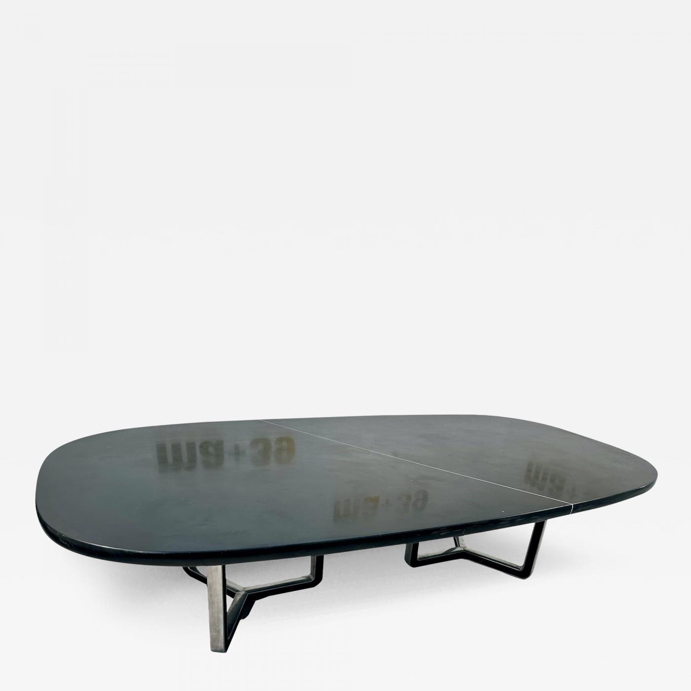 "Centro Progetti Tecno", conference table model 'T335', lacquered wood, aluminum, Italy, 1975-1978 Large conference table with a black lacquered wooden top that has an incredibly soft texture.