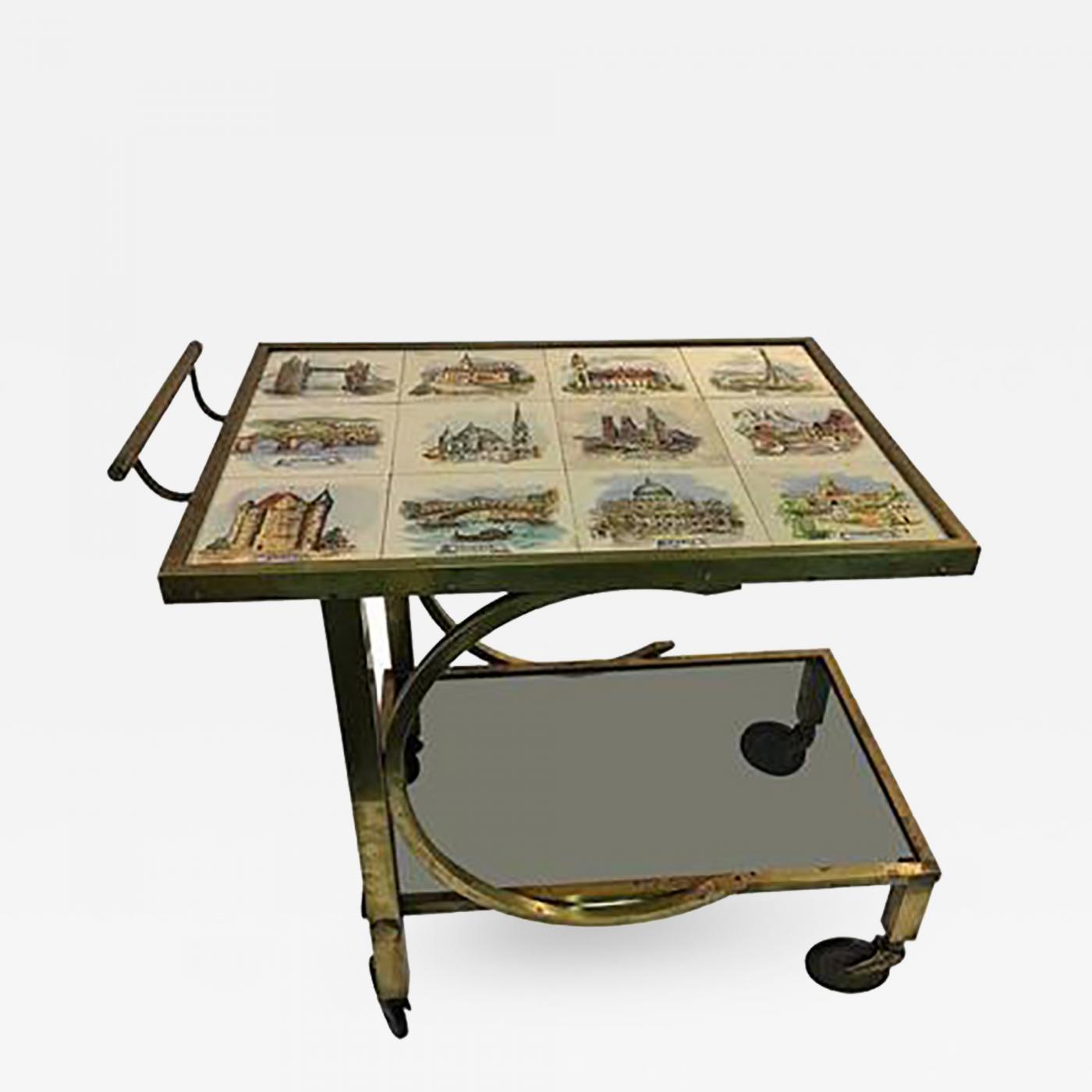Unusual Mid-Century Italian Modernist European Cities Tile Bar Cart