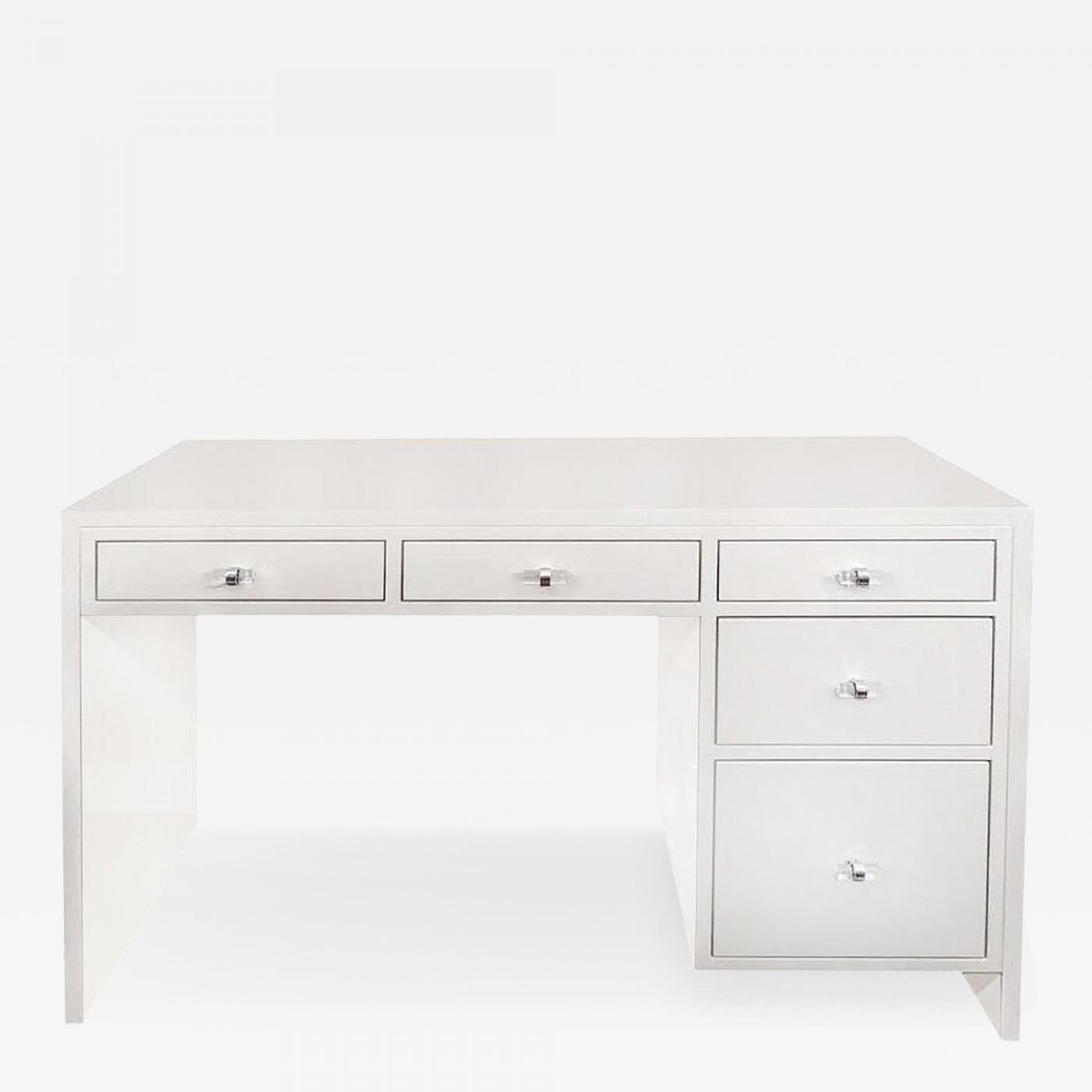 Custom, made-to-order 5-drawer lacquered desk with polished chrome & lucite pulls.