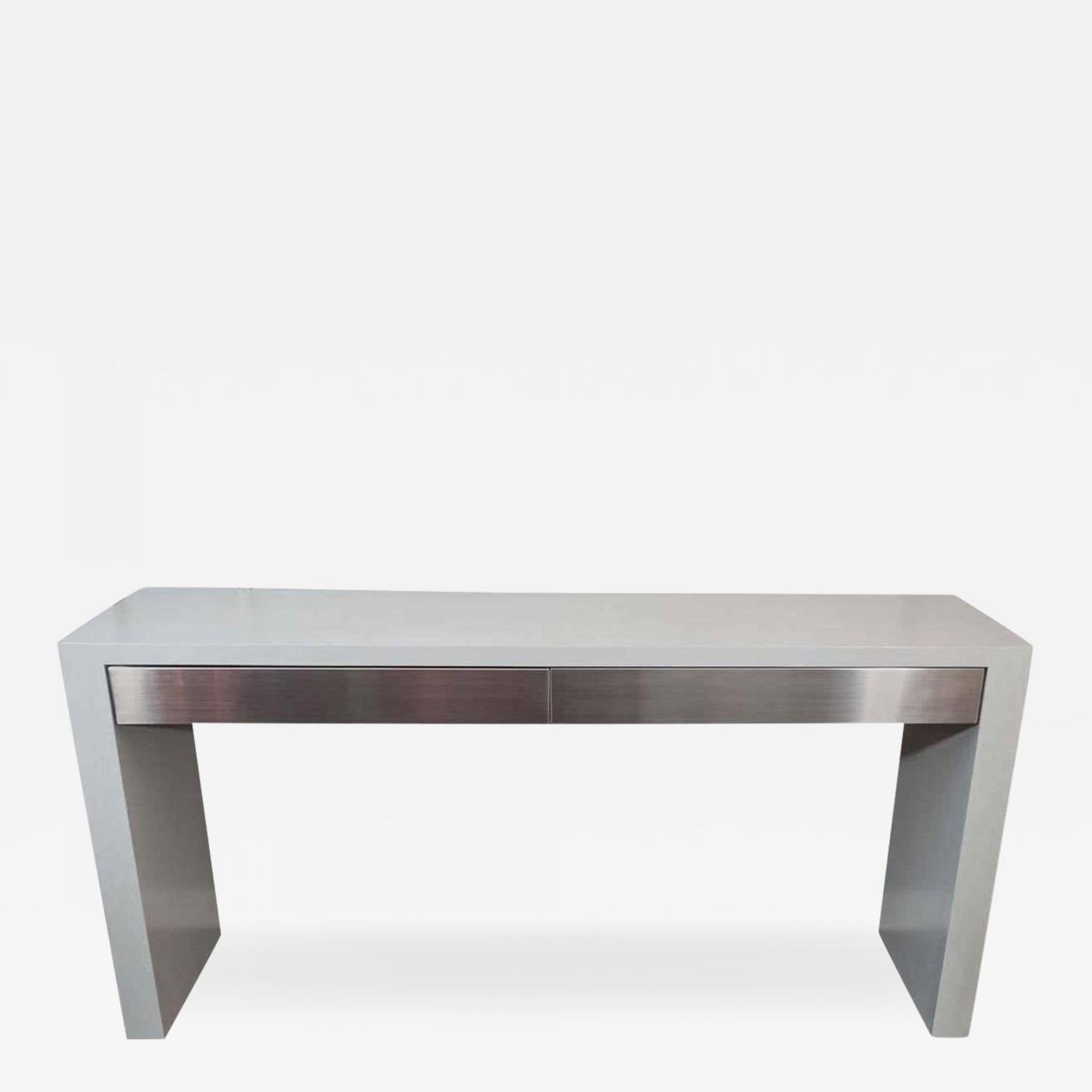 Custom Gray Stained Console with Brushed Stainless Steel Drawers