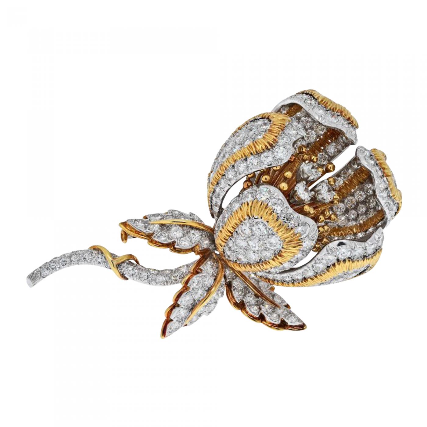 DAVID WEBB PLATINUM & 18K YELLOW GOLD 20.00 CARAT DIAMOND FLOWER BROOCH