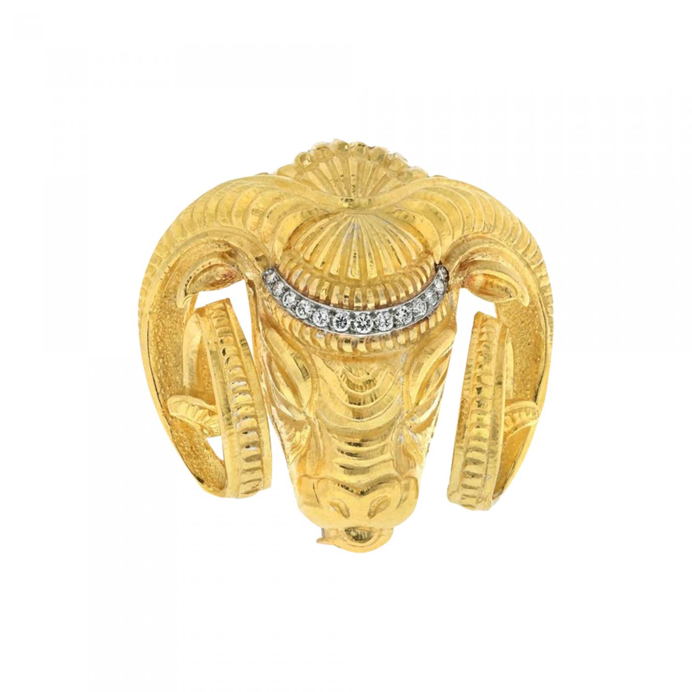 DAVID WEBB PLATINUM & 18K YELLOW GOLD RAM DIAMOND HEAD BROOCH