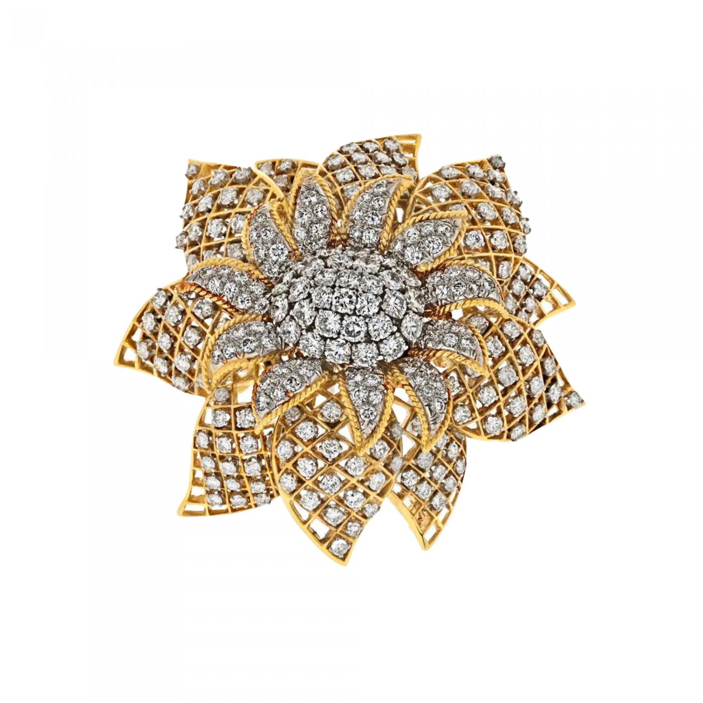 PLATINUM & 18K YELLOW GOLD 25CTW DIAMOND FLOWER INTERCHANGEABLE CENTER BROOCH