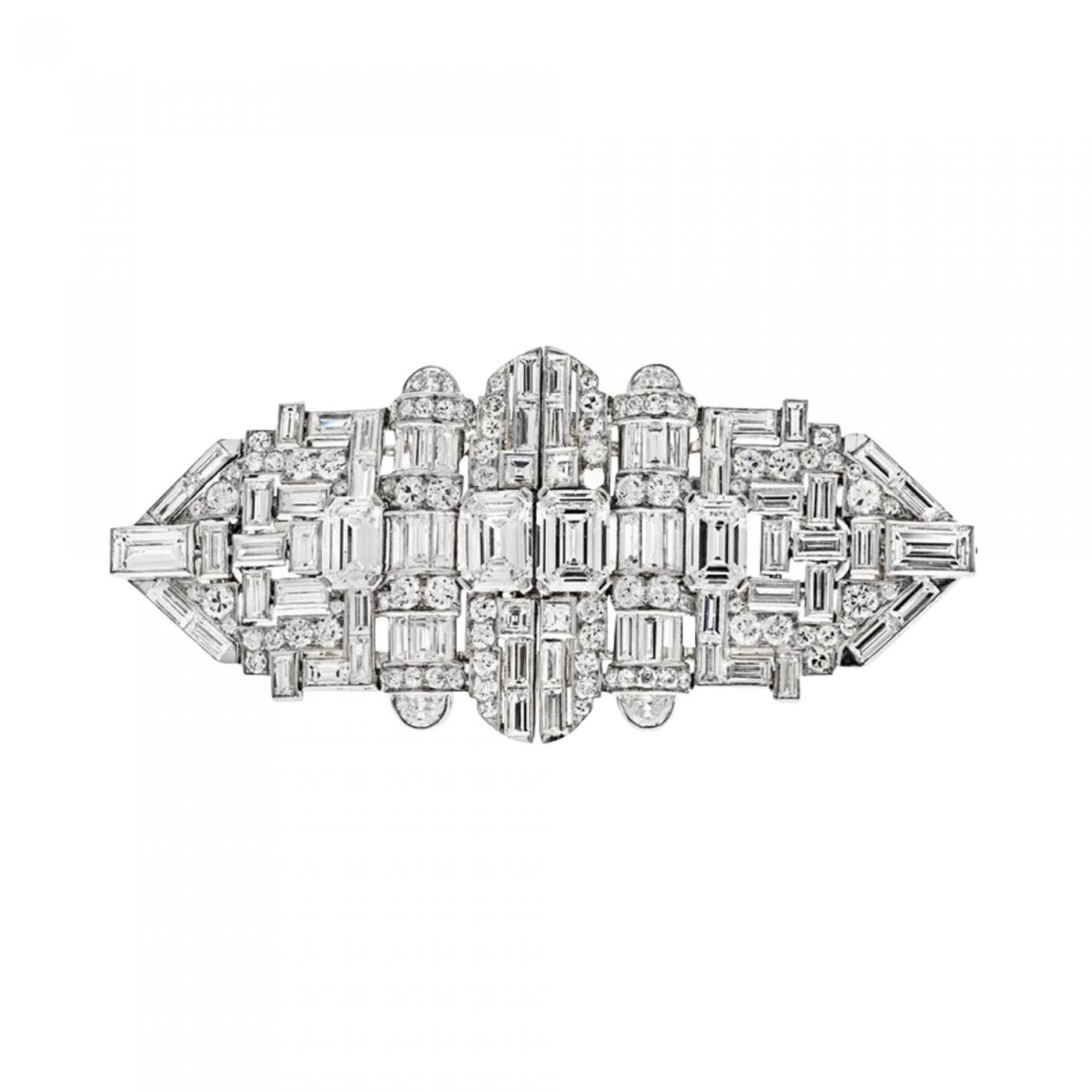 PLATINUM 1930'S DECO DIAMOND DOUBLE CLIP BROOCH