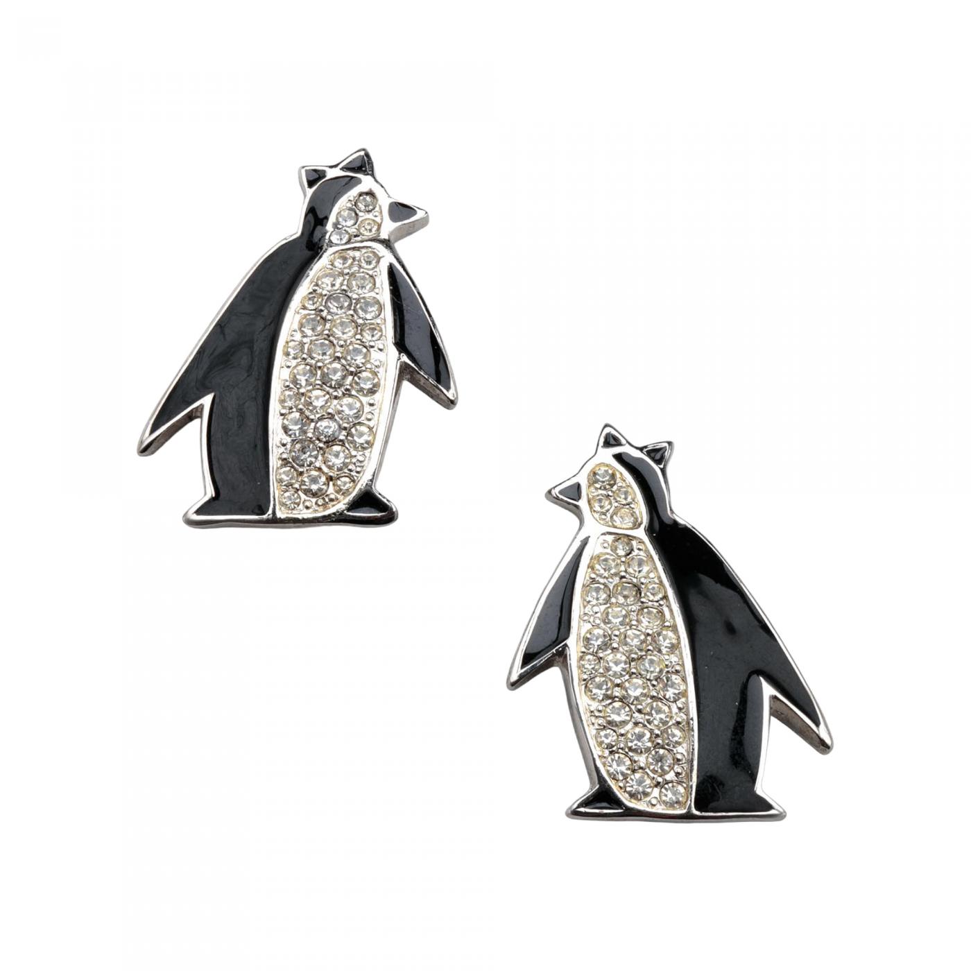Butler & Wilson Rhinestone Penguin with Hair Bow Earrings