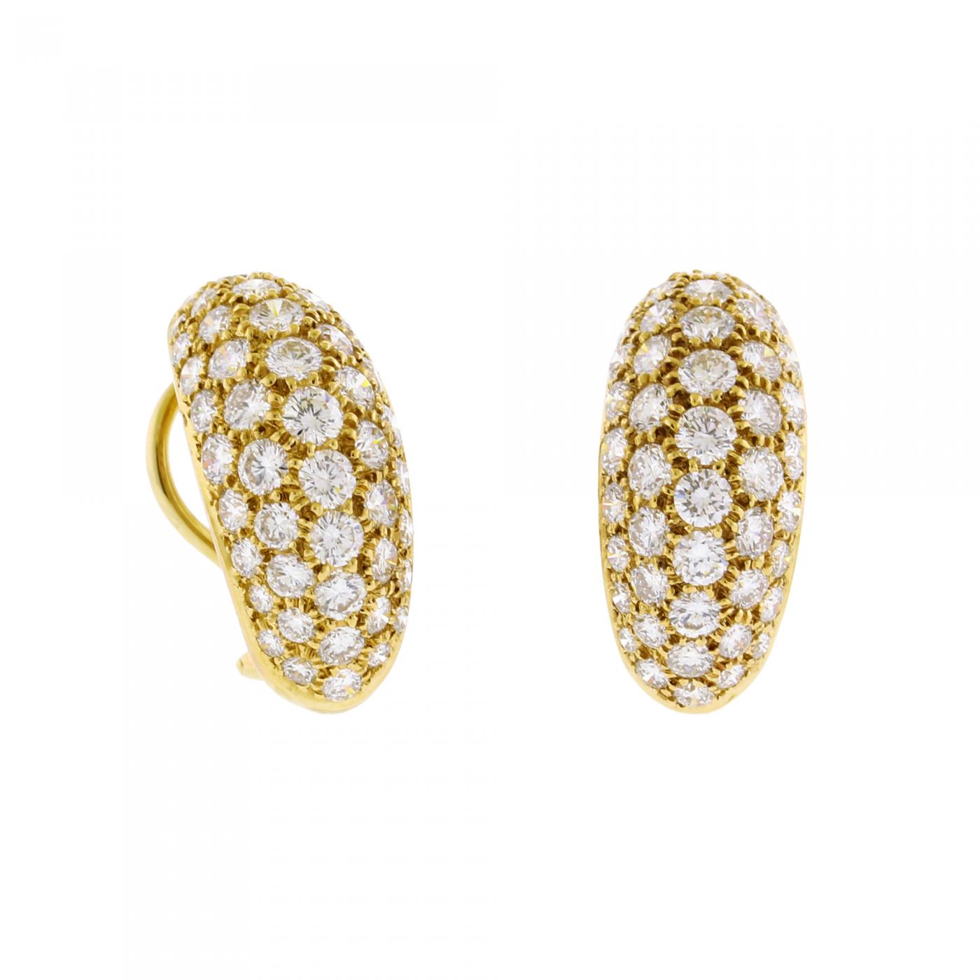 These exquisite Oscar Heyman hoop earrings exemplify the renowned jeweler’s commitment to exceptional craftsmanship and timeless elegance. Expertly handcrafted in 18 karat gold, each earring is meticulously pavé-set with brilliant diamonds—98 stones in total—totaling approximately 5.00 carats. The diamonds are matched for brilliance and clarity, creating a continuous, radiant surface of light.