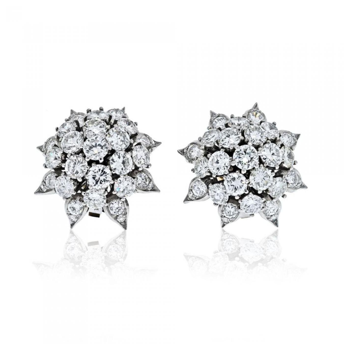 Platinum 12.00ctw Round Cut Diamond Cluster Earrings.