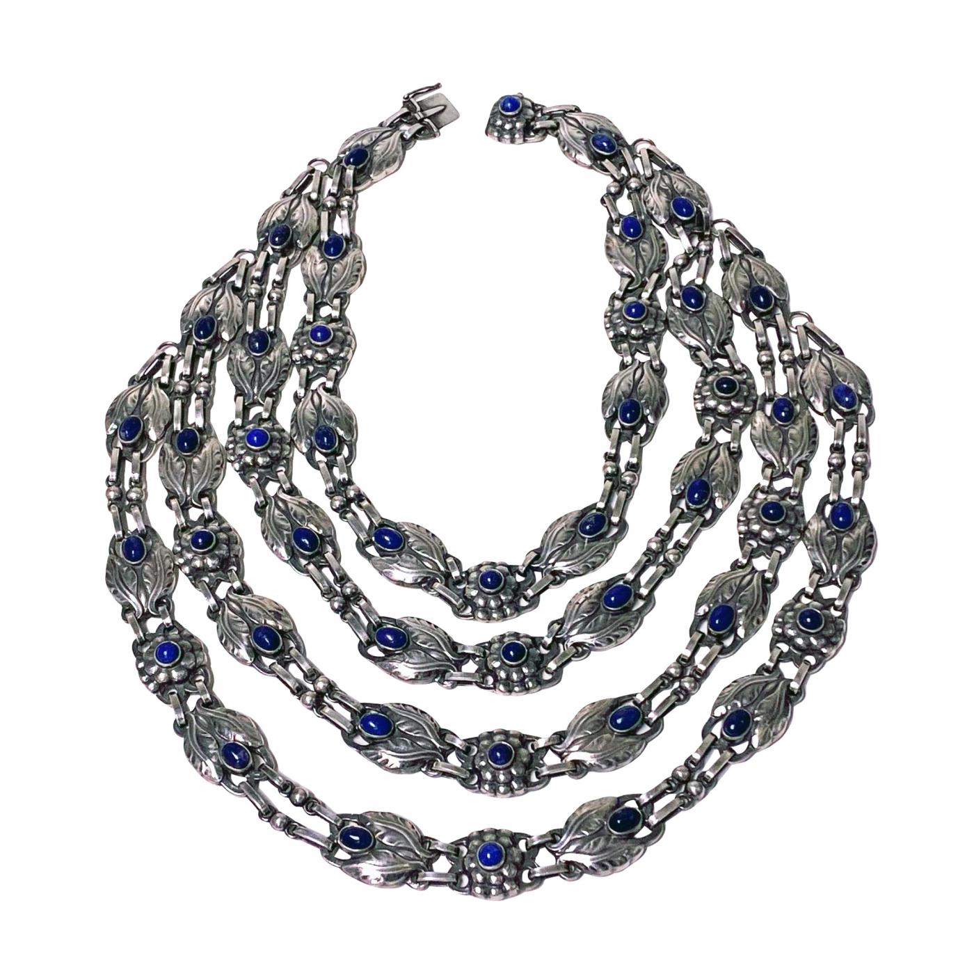Georg Jensen Lapis multi strand Necklace No 1 Denmark C.1933