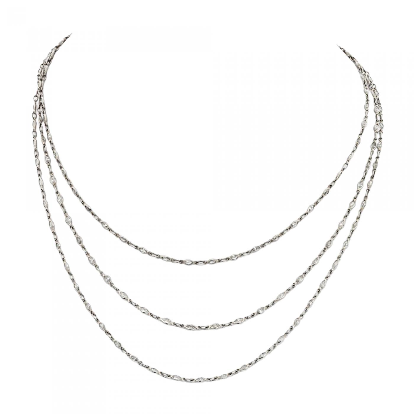 Platinum Old Cut Marquise Vintage Diamond 56 inches Diamonds by the Yard Necklace.