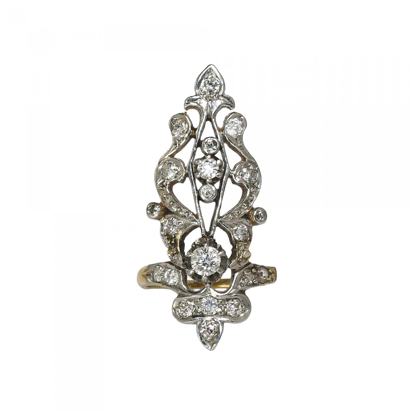 14k Yellow Gold Art Deco 1.0ct Diamond Women’s Rare Long Ring Size 6.5