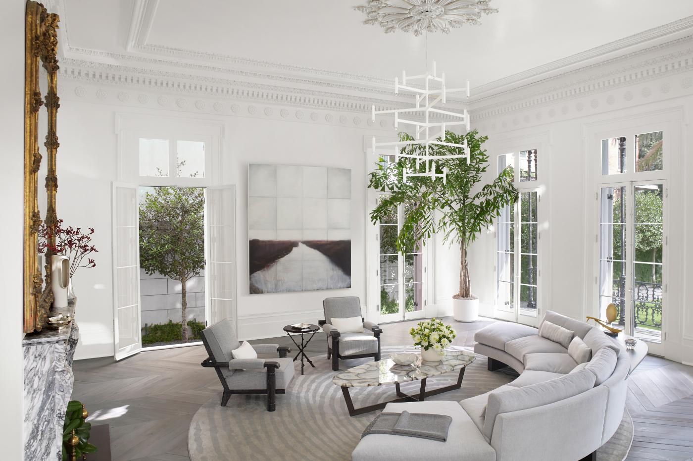 Originally built in the late 1850s as a library and later expanded into a residence, this Greek Revival French Quarter home was carefully restored and reimagined for modern living, with preserved architectural details, open interiors and a redesigned free-floating staircase. Updated spaces include a new kitchen, primary suite and marble-clad bathroom, complemented by a symmetrical, formal landscape and an interior design that balances historic character with modern furniture, art and natural light. Photography by Pieter Estersohn.