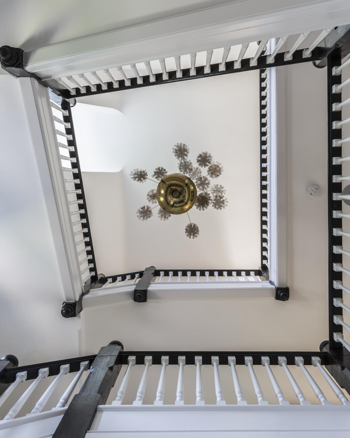 It was restored maintaining its original plaster medallions and detailing, but revitalized with hand-troweled Venetian plaster walls,