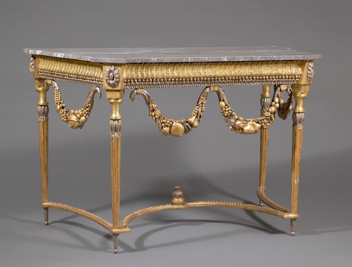 AN EXCEPTIONALLY ELEGANT SILVER AND GILTWOOD NEOCLASSICAL SIDE TABLE OF UNUSUAL CANTED FORM BEARING A CYRILLIC INSCRIBED LABEL Russian. Last Quarter of the Eighteenth Century. Price Upon Request Offered by Carlton Hobbs LLC For further information call 212.423.9000 email enquiries@carltonhobbs.com or visit www.carltonhobbs.com |